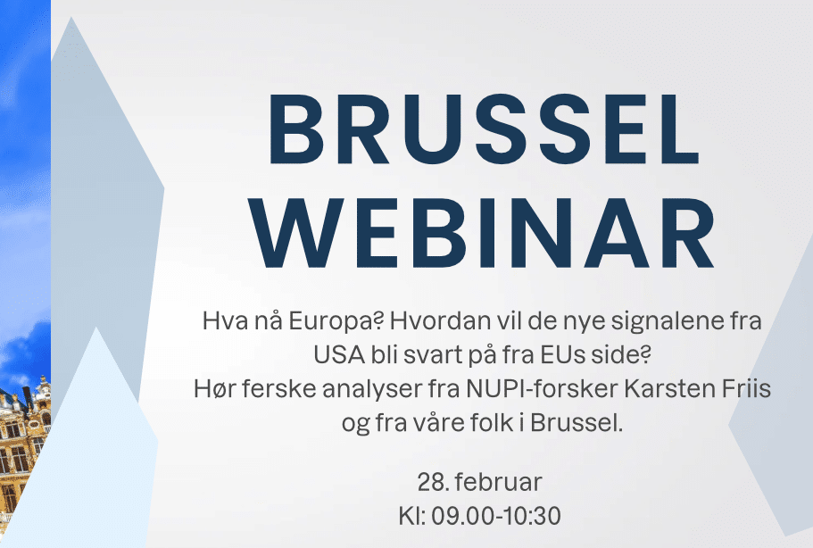 Dramatiske tider i storpolitikken, bli med på det første møte i vår Brussel-webinar-serie!