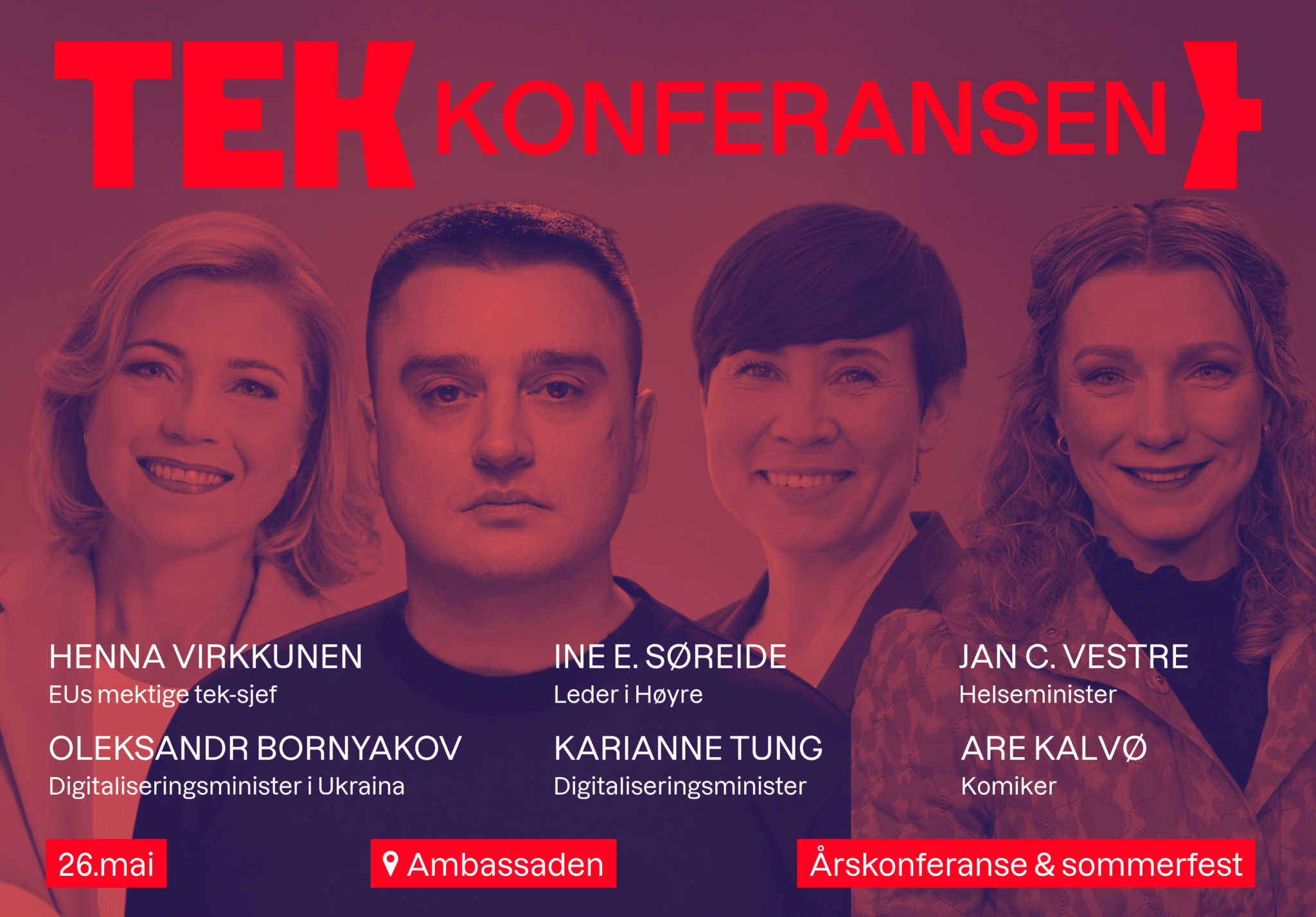 EUs mektige tek-sjef Henna Virkkunen kommer (digitalt). Det gjør også Ukrainas digitaliseringsminister Oleksandr Bornyakov, sammen med digitaliseringsminister Karianne Tung, helseminister Jan Christian Vestre og Høyre-leder Ine Eriksen Søreide. I salen vil det være masse gode medlemmer!