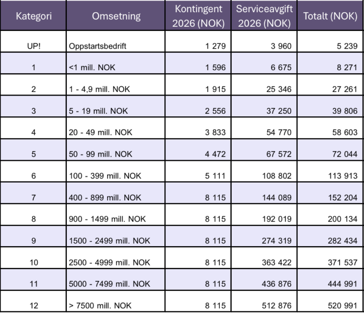 Medlemskontingent og serviceavgift for 2026