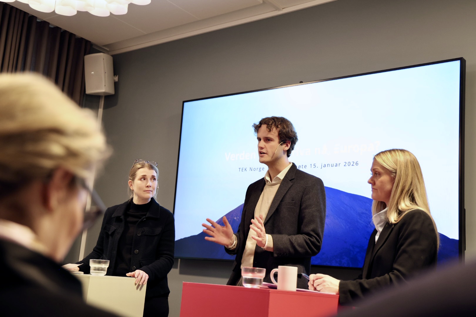 Elise Tingvoll, August Simonsen og Astrid Bergmål i panelet under EU-frokost.
