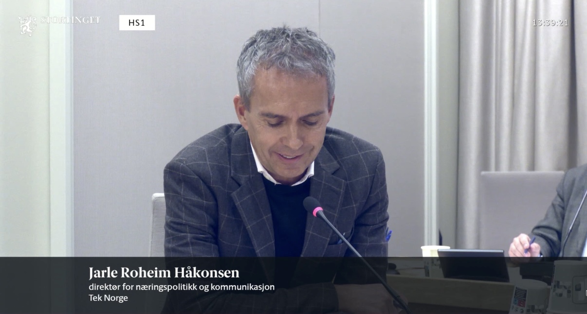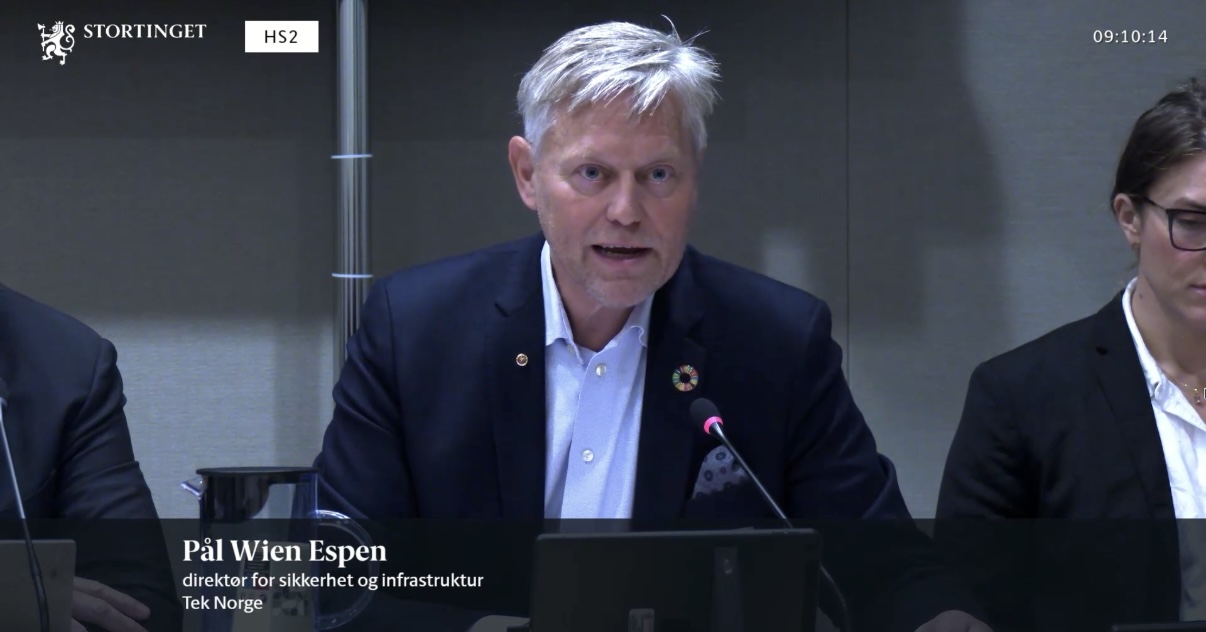 Det understreket Pål Wien Espen, direktør for forsvar, sikkerhet og infrastruktur i TEK Norge i høringen med næringskomiteen.