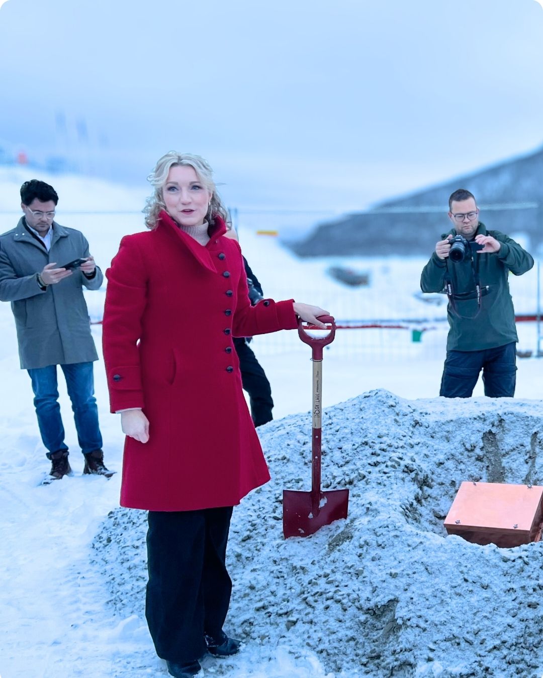 Statsråd Karianne Tung tar første spadetak i Narvik.